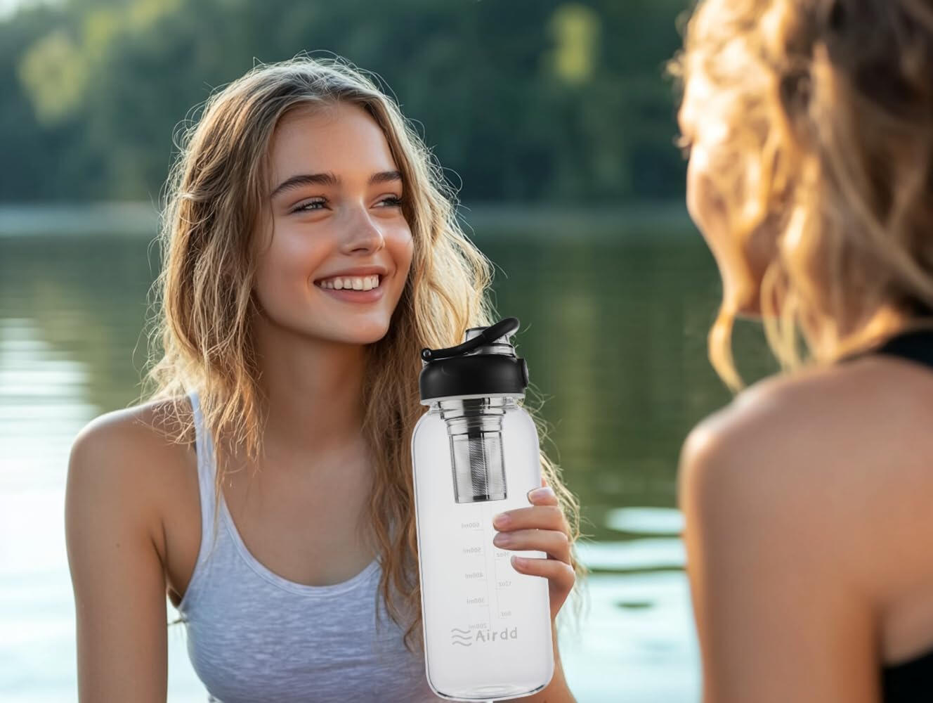 Quick-Open Lid: Enjoy easy one-handed access with Airdd Glass Water Bottle's quick-open lid for seamless hydration.